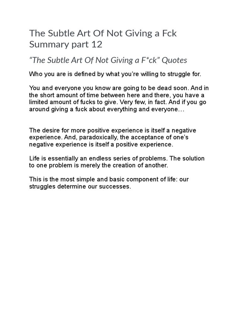 The Subtle Art Of Not Giving A Fck Summary Part 12 Pdf